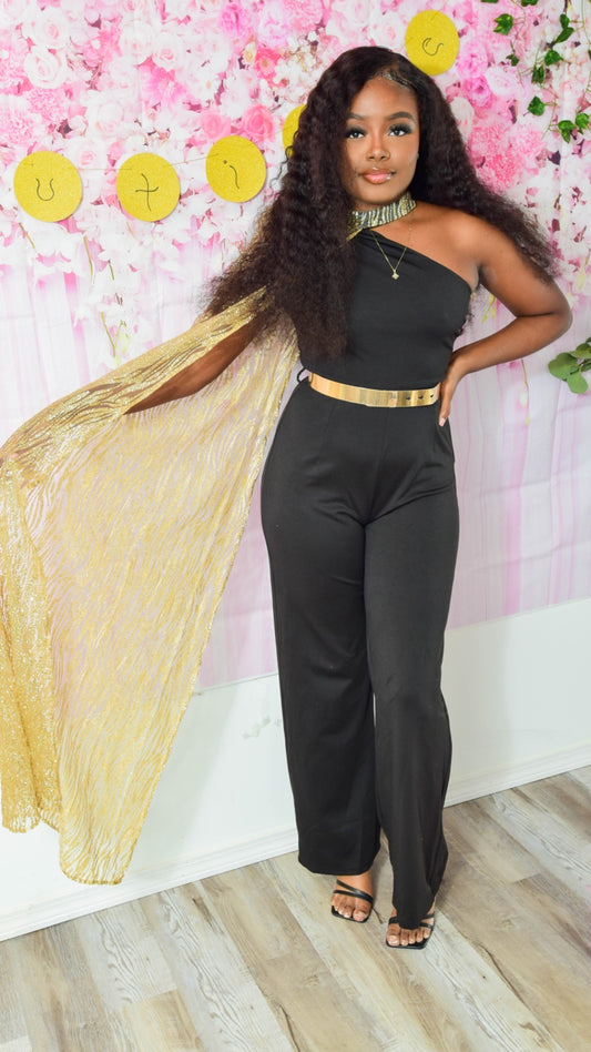 BLACK GOLD BELTED JUMPSUIT