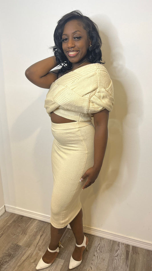 SaleBEIGE KNIT SKIRT SET